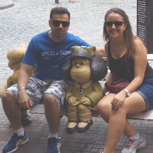 Conhecemos San Telmo num domingo. É o dia mais recomendado para ir até lá, pois é nesse dia que é promovida uma feirinha de produtos locais, com artesanatos, roupas, comidinhas e todo o clima tipicamente argentino. É uma ótima oportunidade para adquirir presentes e souvenirs da cidade. Passamos algumas horas pelas ruas de San Telmo e conseguimos bater a tradicional foto com a Mafalda. A região também conta com ótimos restaurantes (de preços variados), que oferecem o tradicional bife de chorizo e guarnições. Fomos em um restaurante simples e compramos um prato clássico: carne e guarnição, que vinha com um copo de bebida (suco ou refrigerante). Pagamos cerca de R$25 por pessoa.